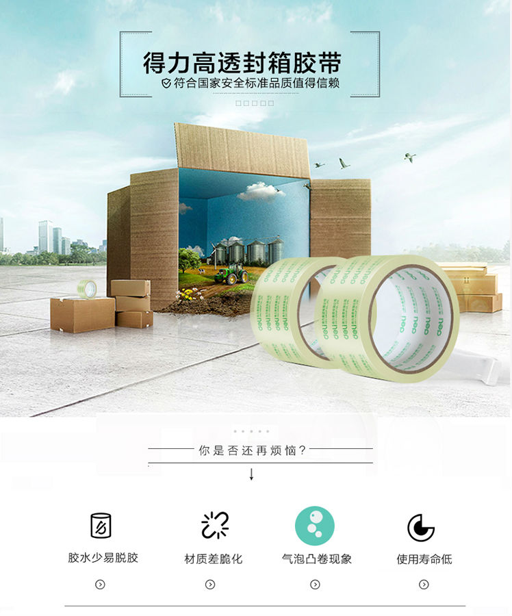 得力(deli)高品質(zhì)高透明封箱膠帶打包膠帶 60mm*40y*50um(36.6m/卷) 1卷裝 辦公用品 30367