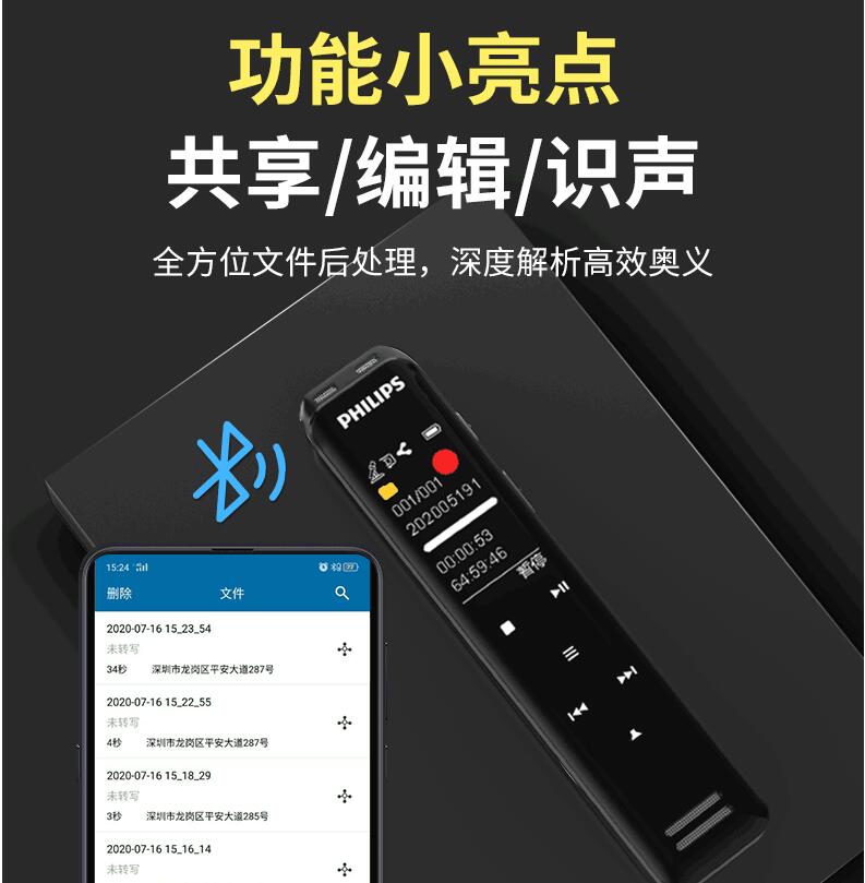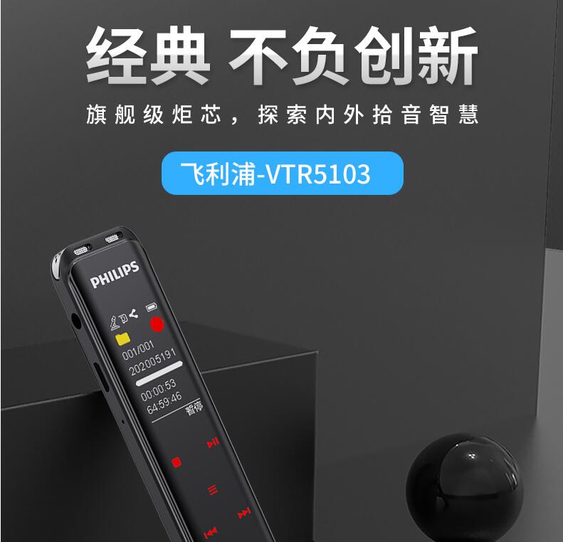 飛利浦VTR5103 Ai智能錄音筆轉文字翻譯專業(yè)高清降噪小型超長待機