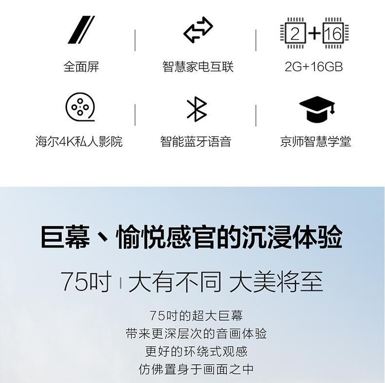 Haier/海爾 LU75C51(PRO) 75英寸4K智能語(yǔ)音超高清平板液晶電視